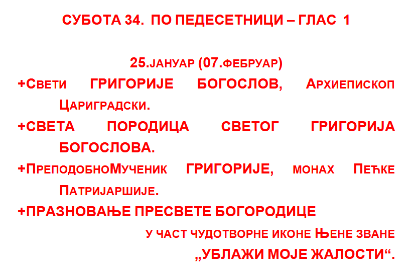 Богослужење ФЕБРУАР 2026 Субота 07.02.2026. 02.07._АПОСТОЛ_суб.34Преузми 02.07._СЛУЖБА_суботаПреузми Петак 06.02.2026. SLUZBA_SV.KSENIJA-PETERBURSKA_RPCMPПреузми SLUZBA_SV.KSENIJA-PETERBUSKA_RPCZA-1Преузми 02.06._АПОСТОЛ_пет.34Преузми 02.06._СЛУЖБАПреузми Недеља 01.02.2026. 02.01._АПОСТОЛ_нед.Митара_гл.1Преузми 02.01._СЛУЖБА_нед.Цариника_гл.1Преузми