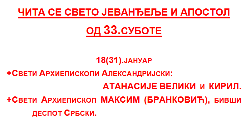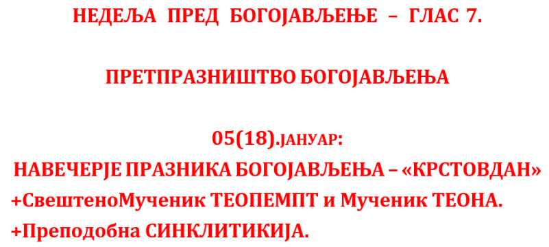 Недеља 18.01.2026.