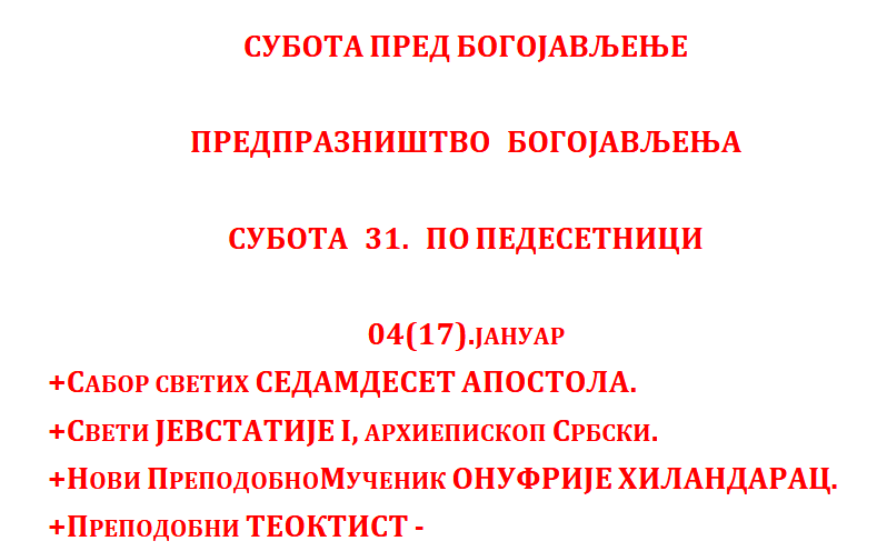 Субота 17.01.2026.