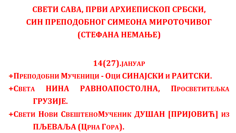 Понедељак 19.01.2026.