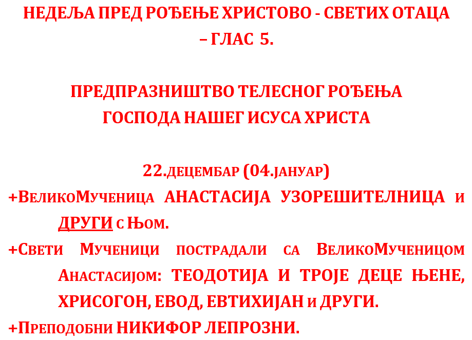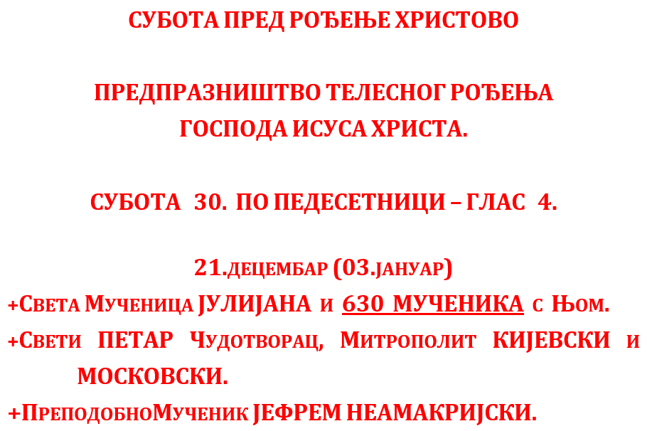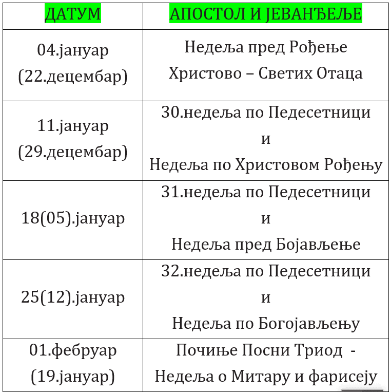 Богослужење ЈАНУАР 2026 Недеља 04.01.2026. 01.04._АПОСТОЛ_нед.ОтацаПреузми Субота 03.01.2026. 01.03._АПОСТОЛ_СуботаПредБожићПреузми