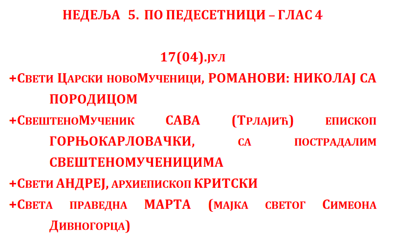 Богослужење ЈУЛ 2022 Недеља 31.07.2022. 07.31._SLUZBA-1Преузми 07.31._APOSTOLПреузми Субота 30.07.2022. 07.30._SLUZBAПреузми 07.30._APOSTOLПреузми TROKON_LITIJA-REZANJE-KOLACAПреузми 07.30._OHRIDSKI-PROLOGПреузми 07.30._SLUZBA_HRAMOVNA-SLAVAПреузми 07.30._APOSTOL_HRAMOVNA-SLAVAПреузми Уторак 26.07.2022. 07.26._SLUZBAПреузми 07.26._SLUZBA_HRAMOVNA-SLAVAПреузми 07.26._JEVANDJELJEПреузми 07.26._APOSTOLПреузми 07.26._APOSTOL_HRAMOVNA-SLAVAПреузми Недеља 24.07.2022. 07.24._SLUZBAПреузми 07.24._APOSTOLПреузми Четвртак 21.07.2022. 07.21._SLUZBAПреузми 07.21._APOSTOLПреузми Недеља 17.07.2022. 07.17._DOPUNA-PROLOGAПреузми 07.17._MOLITVA-POKAJNAПреузми 07.17._JEVANDJELJE-1Преузми 07.17._SLUZBAПреузми 07.17._APOSTOLПреузми Четвртак 14.07.2022. 07.14._OHRIDSKI-PROLOGПреузми 07.14.sluzbaПреузми 07.14._APOSTOLПреузми 07.14._SLUZBA_SLAVA-HRAMAПреузми Уторак 12.07.2022. 07.12._SLUZBAПреузми 07.12._APOSTOLПреузми 07.12.-Служба-слава-храмаПреузми Недеља 10.07.2022. 07.10._SLUZBAПреузми 07.10._APOSTOLПреузми Четвртак 07.07.2022. 07.07._OHRIDSKI-PROLOGПреузми 07.07._SLUZBAПреузми 07.07._SLUZBA_SLAVA-HRAMAПреузми 07.07._APOSTOL-1Преузми Недеља 03.07.2022. 07.03._JEVANDJELJE-1Преузми 07.03._APOSTOL-1Преузми 07.03._SLUZBAПреузми Субота 02.07.2022. 07.02._TEKSTПреузми 07.02._SLUZBAПреузми 07.02._APOSTOLПреузми