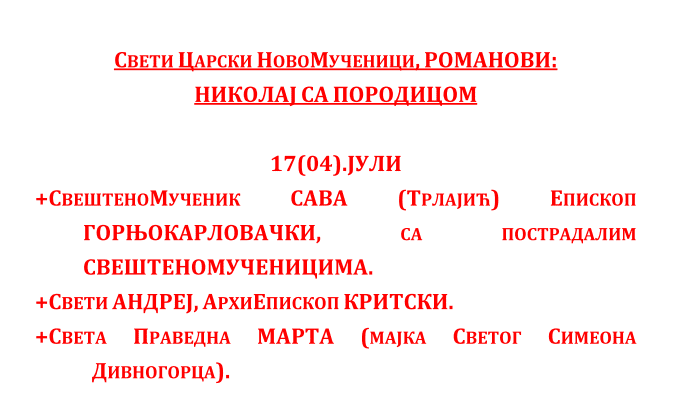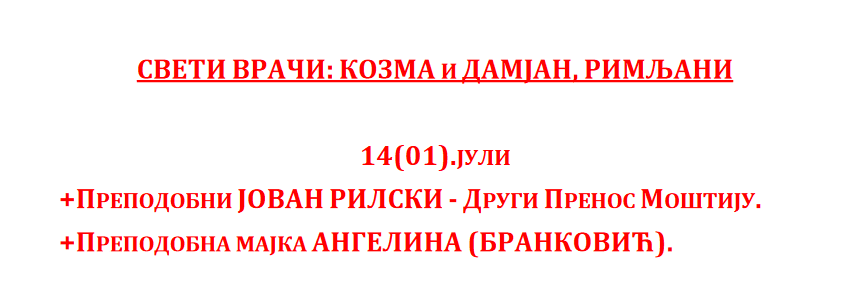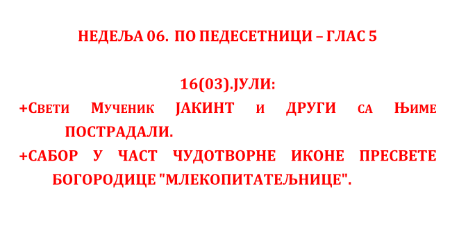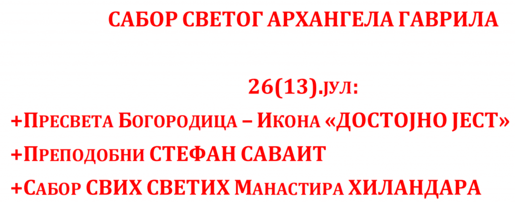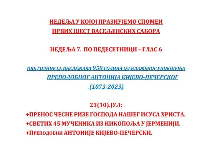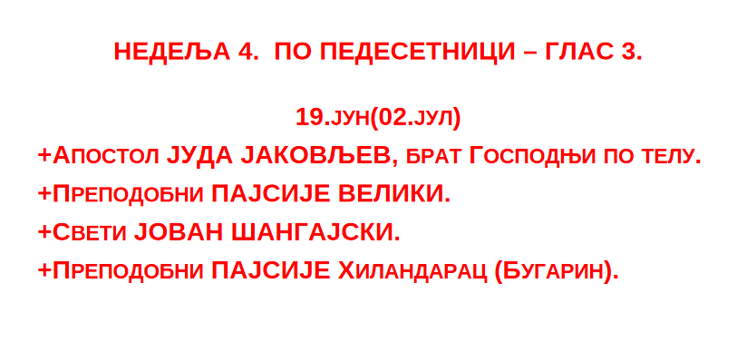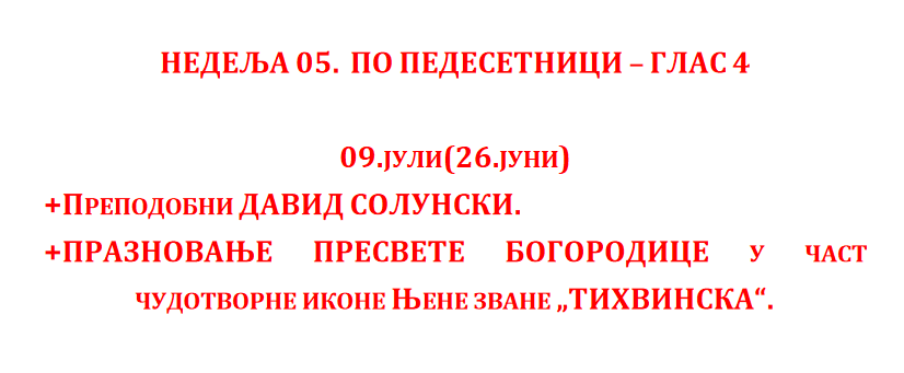 Богослужење ЈУЛ 2023 Недеља 30.07.2023. 07.30._АПОСТОЛ_нед.08.гл.7Преузми 07.30._Охридски-ПРОЛОГПреузми 07.30._Служба_СЛАВА-ХРАМА_нед.08.гл.7Преузми 07.30._СЛУЖБА_нед.08_гл.7Преузми Среда 26.07.2023. 07.26._АПОСТОЛПреузми 07.26._ОХР.ПРОЛОГПреузми 07.26._Служба_СЛАВА-ХРАМАПреузми 07.26._СЛУЖБАПреузми Недеља 23.07.2023. 07.23._нед.Св.Отаца_АПОСТОЛ_нед.07_гл.6Преузми 07.23._нед.Св.Отаца_СЛУЖБА_нед.07_гл.6Преузми Понедељак 17.07.2023. 07.17._МОЛИТВА-ПОКАЈНАПреузми 07.17._ПРОЛОГ-ДОПУНАПреузми 07.17._АПОСТОЛ_пон7Преузми 07.17._СЛУЖБАПреузми 07.17._ЈЕВАНЂЕЉЕ_пон7Преузми Недеља 16.07.2023. 07.16._АПОСТОЛ_нед.06._гл.5Преузми 07.16._СЛУЖБА_нед.06._гл.5Преузми Петак 14.07.2023. 07.14._АПОСТОЛ_пет.6Преузми 07.14._OHRIDSKI-PROLOGПреузми 07.14._Служба_СЛАВА-ХРАМАПреузми 07.14._СЛУЖБАПреузми Среда 12.07.2023. 07.12._АПОСТОЛ_сре.6Преузми 07.12._Охридски-ПРОЛОГПреузми 07.12._Служба_СЛАВА-ХРАМАПреузми 07.12._СЛУЖБАПреузми Недеља 09.07.2023. 07.09._Апостол_нед.05_гл.4Преузми 07.09._Служба_нед.05_гл.4Преузми Петак 07.07.2023. 07.07._Апостол_5.ПЕТПреузми 07.07._OHRIDSKI-PROLOGПреузми 07.07._SLUZBA_SLAVA-HRAMAПреузми 07.07._СлужбаПреузми Недеља 02.07.2023. 07.02_Апостол_4.НЕДПреузми 07.02_Служба_4.НЕДПреузми Субота 01.07.2023.