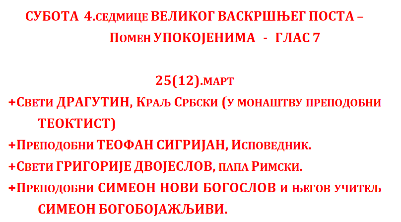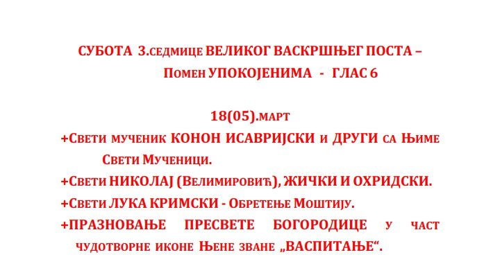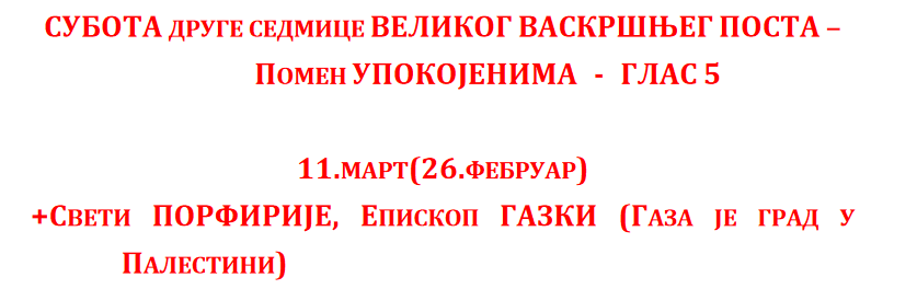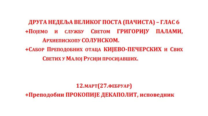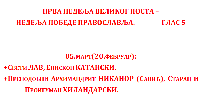 Богослужење МАРТ 2023 PROSVECENJE-1Преузми Четвртак 30.03.2023. ПРОЛОГ_СИНАКСАРПреузми КОЛАЧ-РЕЗАЊЕПреузми ЛИТИЈА_ТРОКОНПреузми МОЛИТВЕ-ПОСЛЕ-СВЕТЕ-ЛИТУРГИЈЕПреузми 03.30._СЛУЖБА-ПРЕЂЕОСВЕЋЕНИ_в.п.5четПреузми Недеља 26.03.2023. ТЕКСТ-ЗА-ХРАМ_нед.СредоПоснаПреузми 03.26._АПОСТОЛ_нед.СредоПоснаПреузми 03.26._СЛУЖБА_нед.СредоПоснаПреузми Субота 25.03.2023. 03.25._АПОСТОЛ_в.п.4субПреузми 03.25._СЛУЖБА_в.п.4субПреузми Недеља 19.03.2023. 03.19._ТЕКСТ_нед.КрстоПоклонаПреузми 03.19._АПОСТОЛ_нед.КрстоПоклонаПреузми 03.19._СЛУЖБА_нед.КрстоПоклонаПреузми Субота 18.03.2023. 03.18._АПОСТОЛ_в.п.3субПреузми 03.18._СЛУЖБА_в.п.3субПреузми Недеља 12.03.2023. ТЕКСТ_ЗА_ХРАМ_нед.ПачистаПреузми 03.12._АПОСТОЛ_нед.ПачистаПреузми 03.12._СЛУЖБА_нед.ПачистаПреузми Субота 11.03.2023. 03.11._АПОСТОЛ_в.п.2субПреузми 03.11._СЛУЖБА_в.п.2субПреузми Недеља 05.03.2023. ТЕКСТ_ЗА_ХРАМ_нед.ПобедеПравослављаПреузми 03.05._АПОСТОЛ_нед.ПобедеПравослављаПреузми 03.05._СЛУЖБА_нед.ПобедеПравославља_гл.5Преузми Субота 04.03.2023. TEKST-ZA-HRAMПреузми 03.04._АПОСТОЛ_ТеодороваСуботаПреузми 03.04._СЛУЖБА_ТеодороваСуботаПреузми