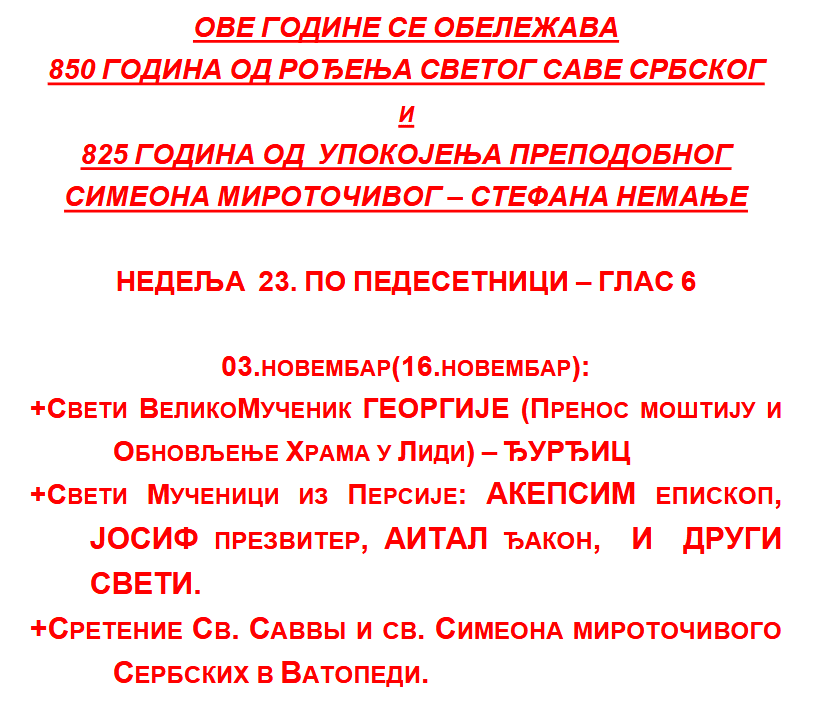 Недеља 23.11.2025.