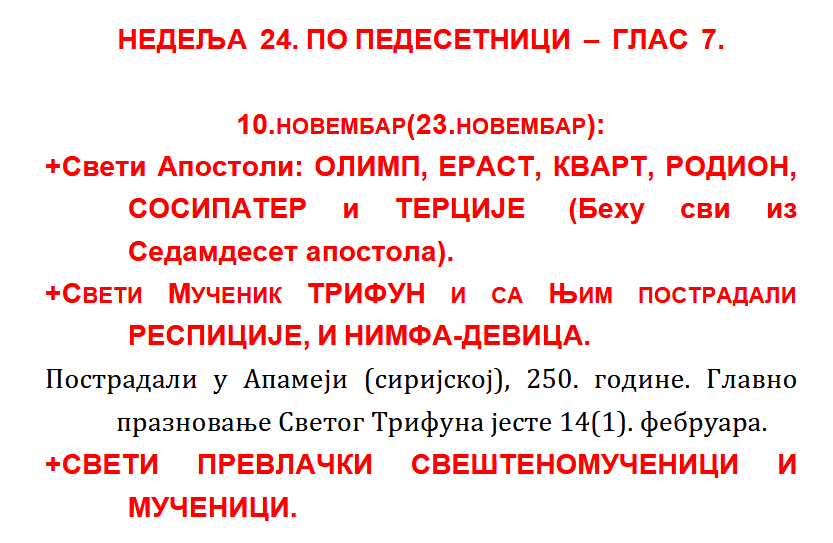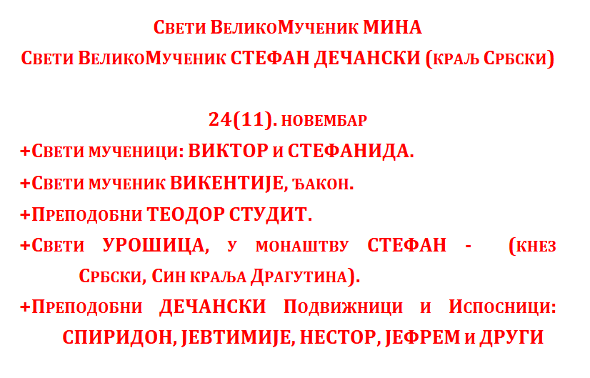 Понедељак 24.11.2025.