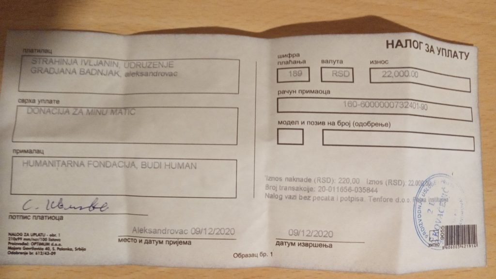 Удружење „Бадњак“ је дао и свој скромни допринос уплативши готово 320.000 динара кроз разне акције у сарадњи са великим бројем људи!